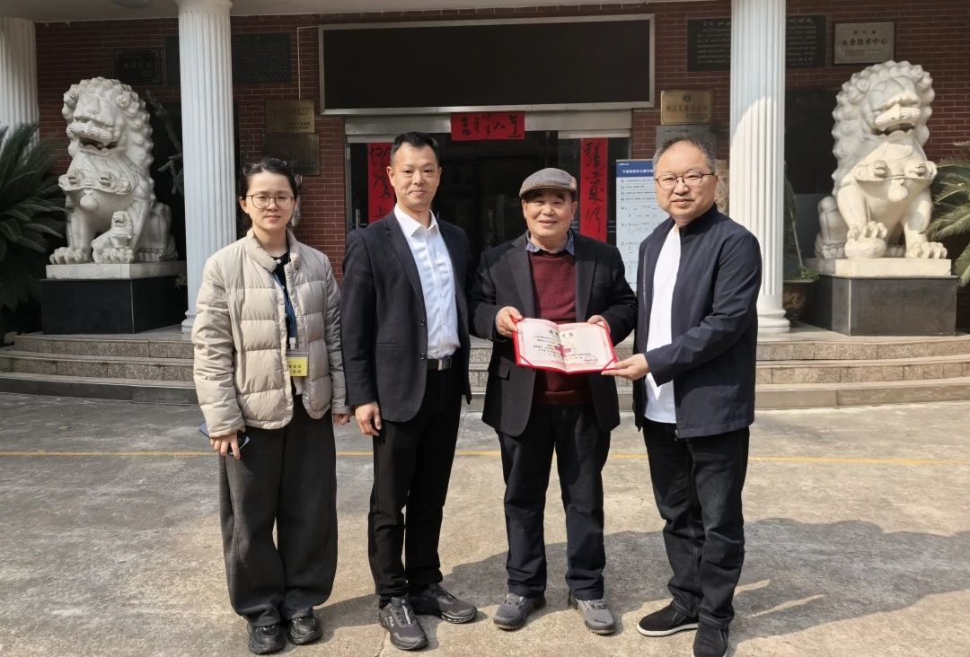 圖為寧??h委副書記黃秦波、董事長儲江歡送儲為統(tǒng)赴京受獎